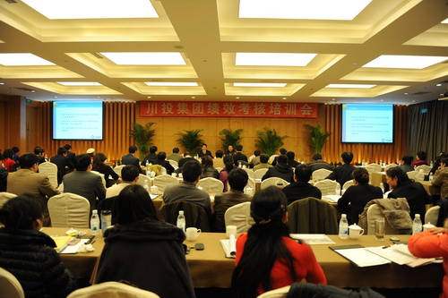 为认真贯彻落实集团公司经营业绩考核暂行办法,进一步做好年度绩效考核工作,集团公司于12月17日在川投国际酒店举行了为期一天的绩效考核培训会。集团公司总经理郭勇、党委副书记董建良、总经理助理兼人力资源部经理薛东兵、计划部、财务部负责人出席了会议。同时参加培训的还有集团及所属公司与绩效考核工作相关的计划部、财务部、人力资源部相关领导及工作人员共计一百余人。