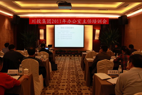 10月12日上午,川投集团2011年办公室主任培训会议在川投国际酒店召开。会议由集团公司总经理助理、办公室主任杨强主持,全国知名新闻传播学专家、四川省社科院赵志立教授特邀到会授课,集团公司办公室全体同志、各所属企业办公室主任共计50余人参加会议,集团公司副总经理李文志出席了会议并讲话。