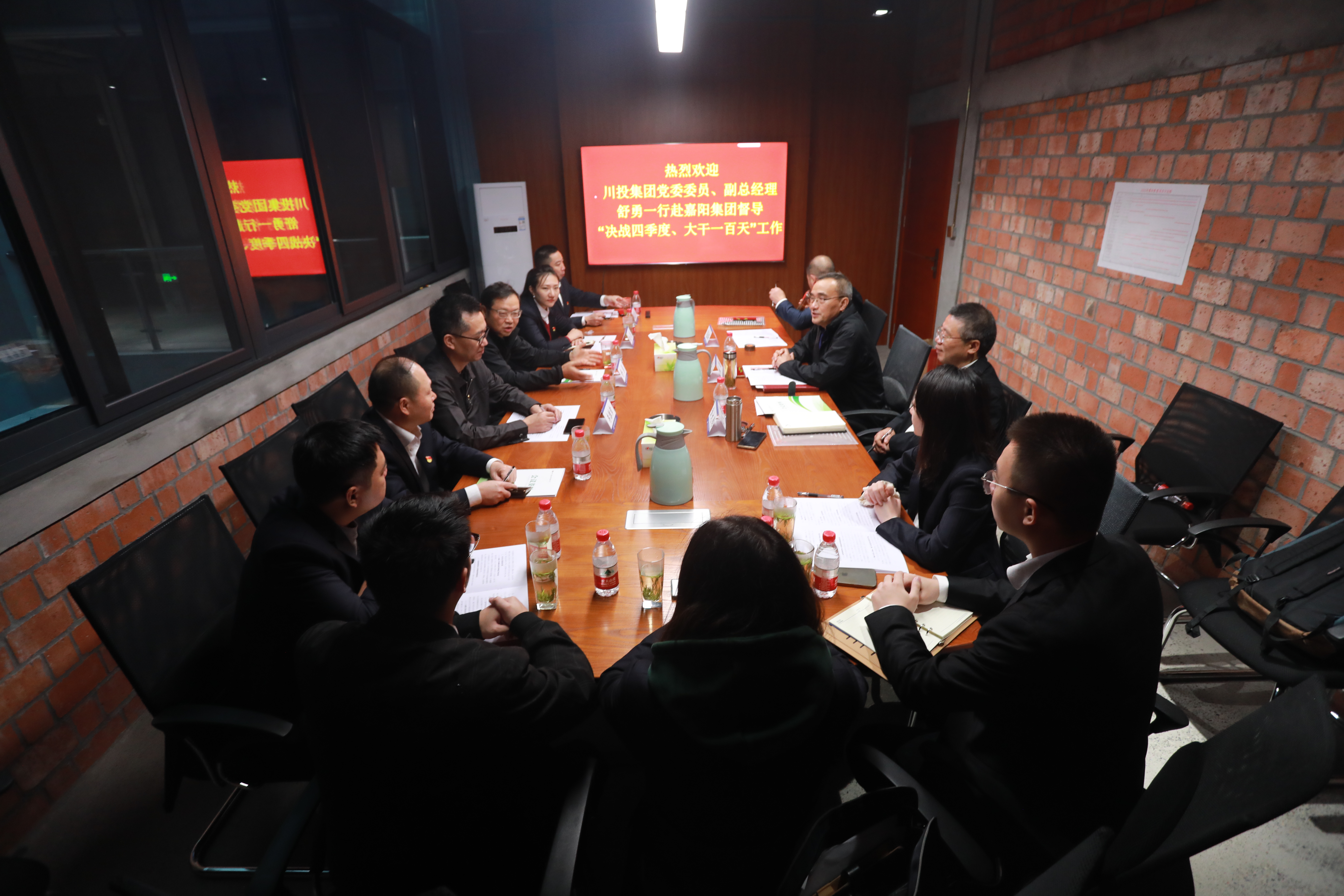 10月26日-28日,为贯彻落实集团公司“决战四季度、大干一百天”动员大会精神,确保完成全年生产经营各项目标任务,集团公司党委委员、副总经理舒勇率队赴川投燃电、川投信产、川投峨铁、嘉阳集团等企业进行现场督导调研,他分别听取了四家公司关于前三季度生产经营情况的汇报和“决战四季度、大干一百天”工作部署,对各所属公司在贯彻落实集团公司决策部署上,行动迅速、目标清晰、措施得力给予高度赞赏;对各企业在项目推进、生产经营、市场拓展、转型升级等方面取得的成绩表示肯定,并对下一步工作提出了具体要求。