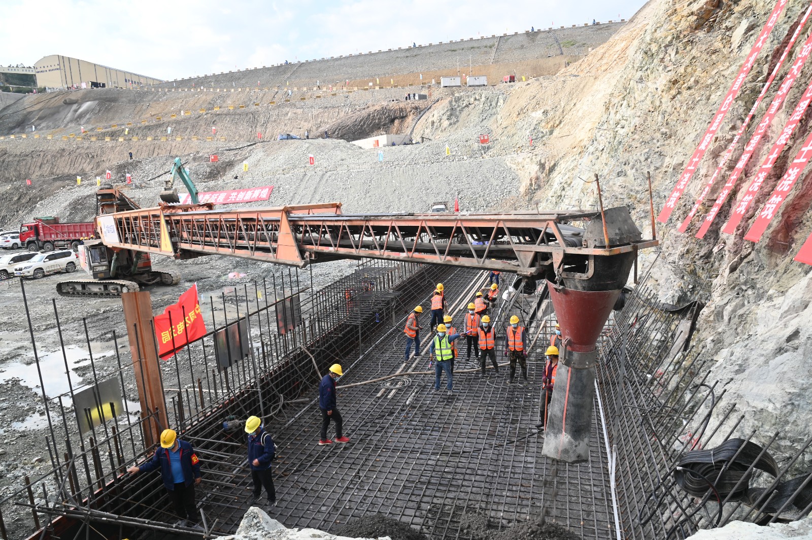 根据项目负责人介绍,为了加快主体工程施工,九月中旬,攀水电公司就制定了“决战四季度、大干一百天,力争提前完成二期基坑开挖,加快主体工程施工,献礼二十大”活动实施方案,并成立了指挥部、6个工程推进组和7个活动保障组。