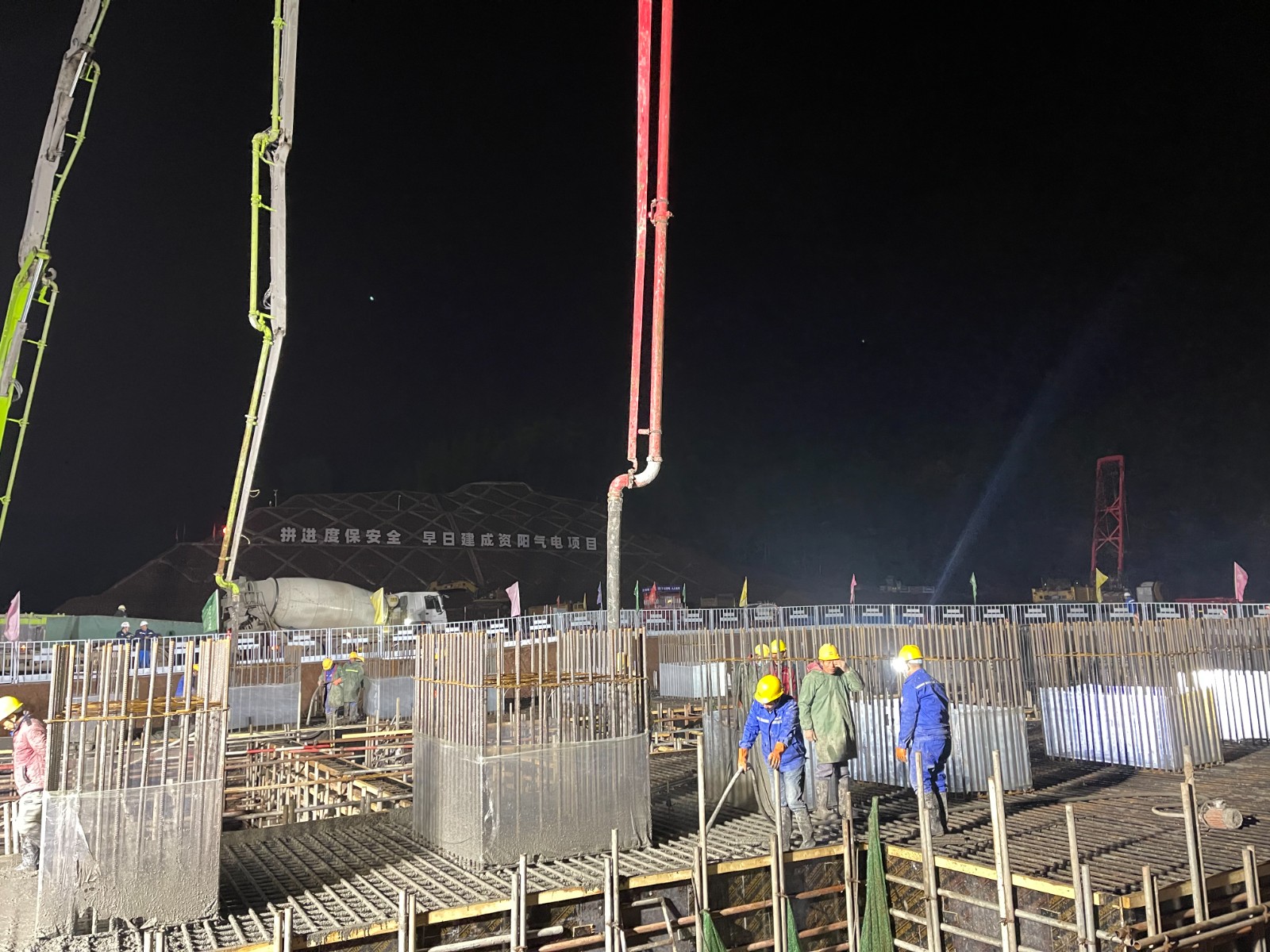12月2日凌晨4点46分,经过近11小时的连续奋战,资阳燃气电站#2余热锅炉底板基础浇筑圆满完成。该项目节点,是资阳燃气电站继11月5日#1余热锅炉筏板基础浇筑后的第二个大体积混凝土浇筑,时间仅隔一个月。