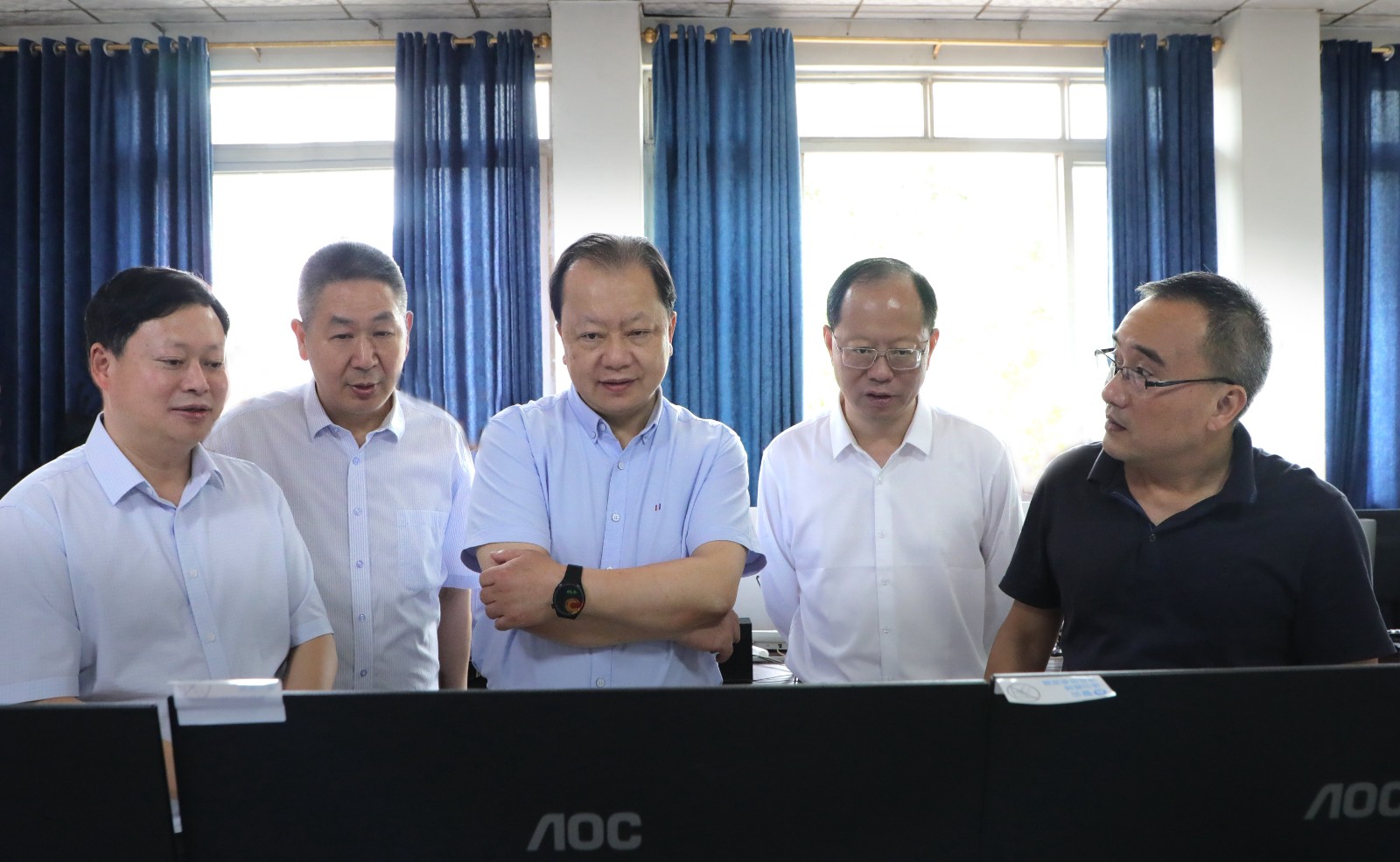 梁武湖一行在矿井监控调度中心通过查看视频监控、现场听取汇报等方式详细了解企业安全生产、智能化建设等工作情况,与相关人员进行了深入交流,对嘉阳集团的相关工作给予了充分肯定。