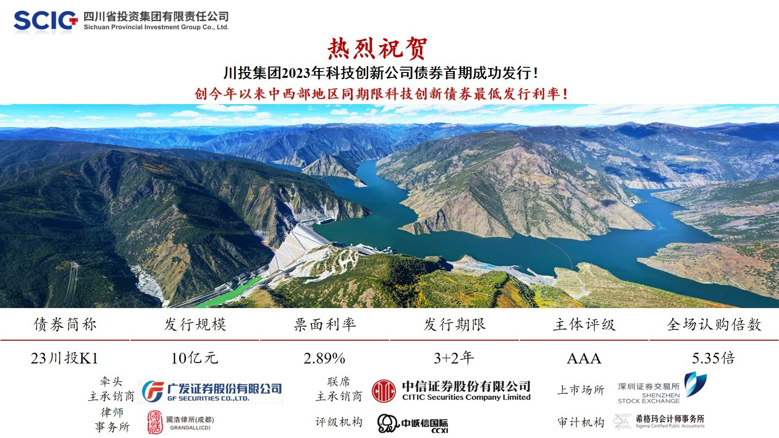 本期科创债的成功发行是集团公司在深交所公司债券市场的首次亮相,也是川投集团公司债券发行品种的重大创新,进一步树立了川投集团在资本市场的良好形象,拓宽了川投集团的直接融资渠道,以高认购和低利率的发行为四川地方国企市场化融资树立了新标杆,同时也为川投集团全面贯彻新发展理念,融入新发展格局,加快构建世界一流财务管理体系,有力支撑川投集团高质量发展奠定了坚实基础。