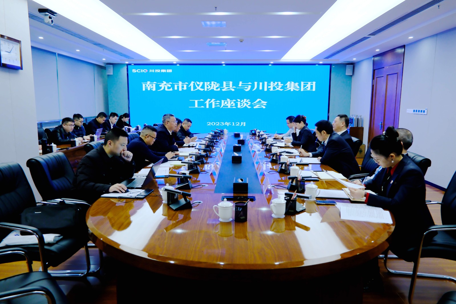 12月5日,南充市仪陇县县委书记郭宗海一行到访川投集团,就落实省委、省政府对39个欠发达县域托底性帮扶的安排部署,与川投集团开展专项工作座谈交流。集团党委副书记、副董事长、总经理李文志出席并主持会议,集团党委副书记、董事邓凯参加会议。