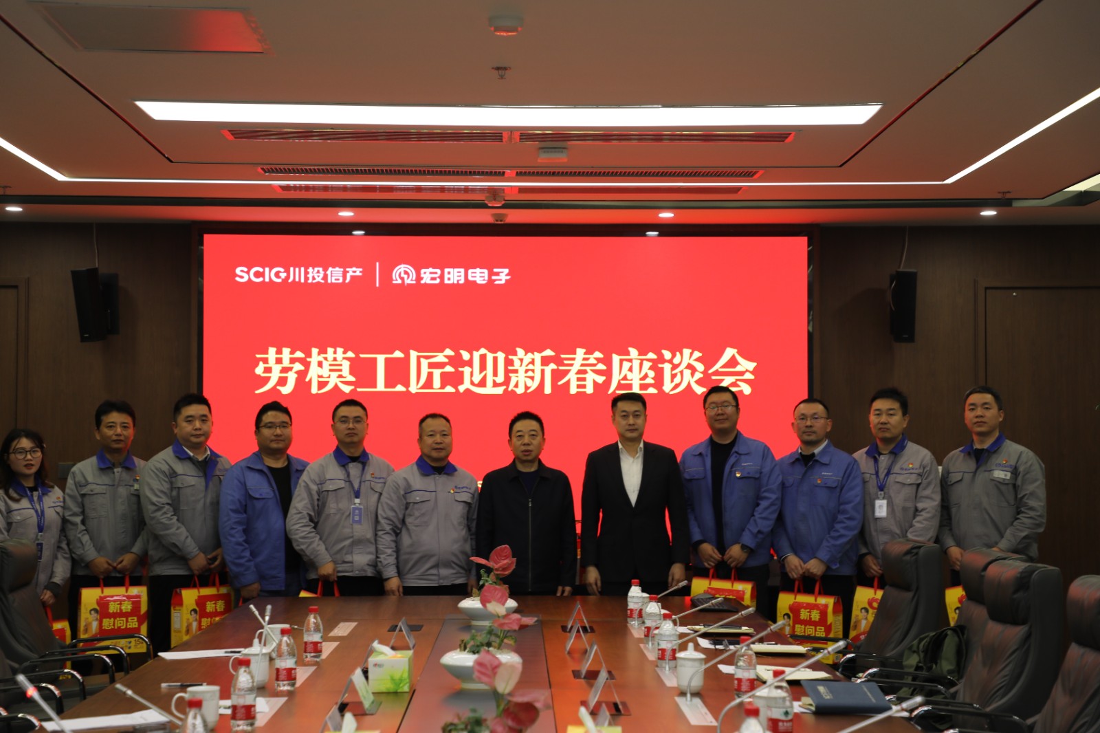 1月22日,集团副总经理肖长青赴宏明电子参加劳模工匠迎新春座谈会。川投信产党委副书记、总经理梁涛,宏明电子主要负责人参加。