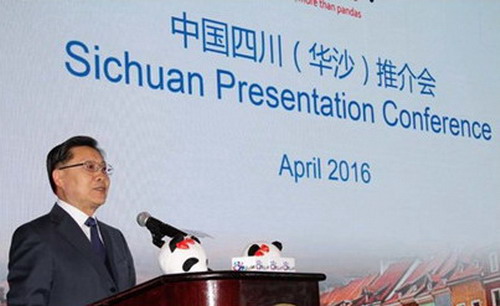徐进主任在发言中重点介绍了四川省属企业的相关情况,董事长向与会领导及嘉宾、记者朋友们重点推介了川投集团及上市公司川投能源的相关情况。