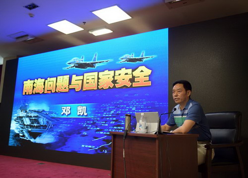 由邓凯副书记以《南海争端与国家安全》为题作了讲坛首期开讲,他从南海概况、南海争端的由来与现状、南海问题的发展趋势、解决南海问题的战略思考等四个方面,用生动的语言,详实的事例,深入浅出的对南海形势作了全面解析。大家一致感到,整个讲座贯穿了习总书记“七一”讲话关于和平发展问题的重要思想,是一次别开生面、喜闻乐见的“两学一做”教育,不仅使大家较全面系统地了解了南海问题的历史和现状,也进一步激发了大家的爱国主义热情,增强了对人民军队维护国家安全的必胜信心。大家纷纷表示,要牢记责任使命,把强烈的爱国主义情感转化为干好本职工作的动力,为实现强国强企做出自己应有的贡献。