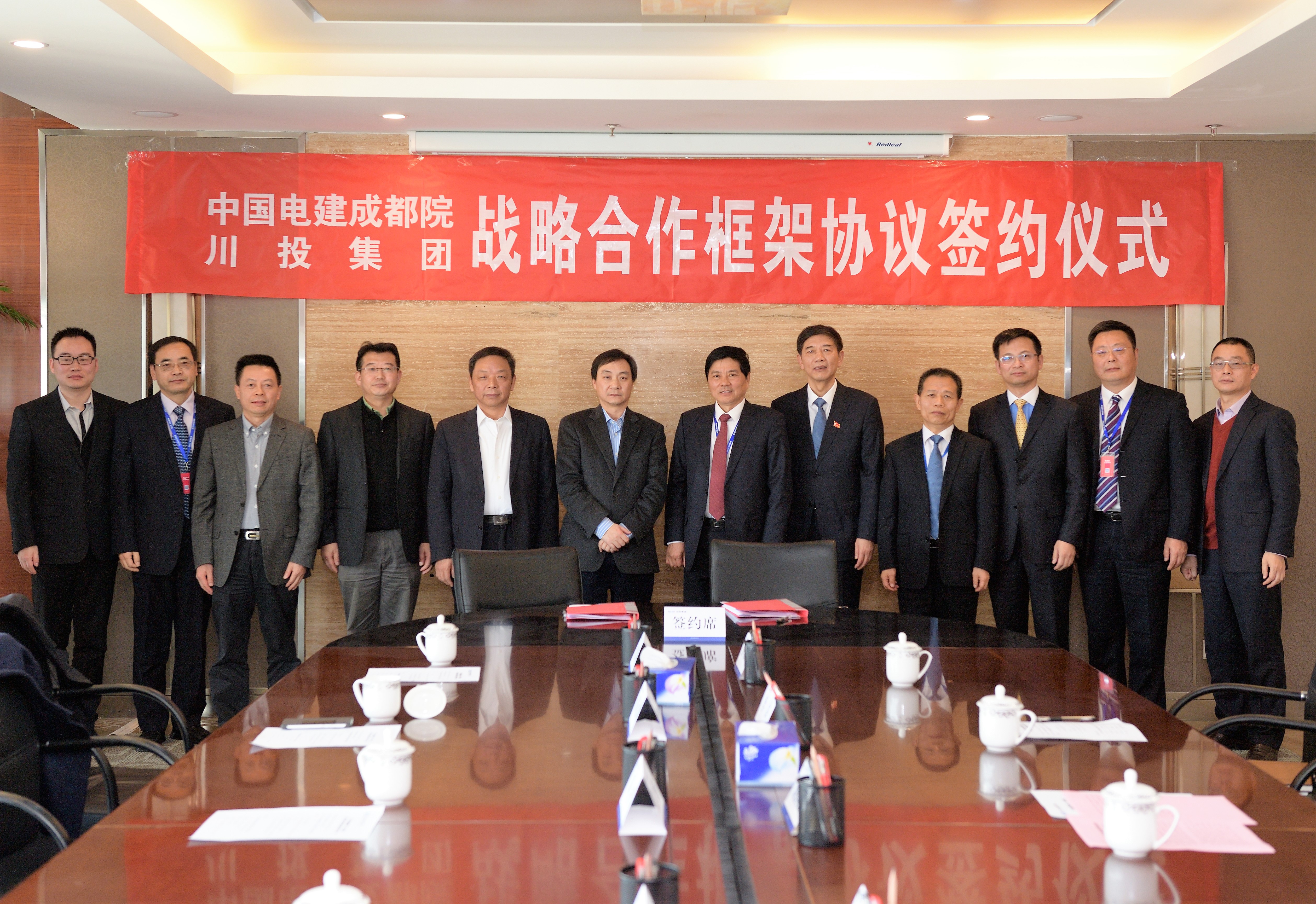 2017年1月13日上午,川投集团与中国电建集团成都勘测设计研究院有限公司(简称中国电建成都院)战略合作框架协议在集团2311会议室举行。中电建成都院执行董事、总经理、党委副书记黄河,集团公司党委书记、董事长出席签约仪式并致辞。签约仪式由集团公司党委副书记、副董事长、总经理主持。