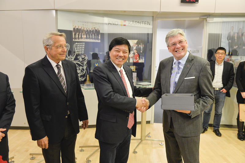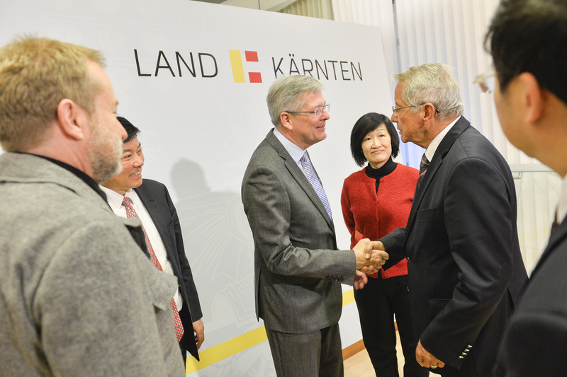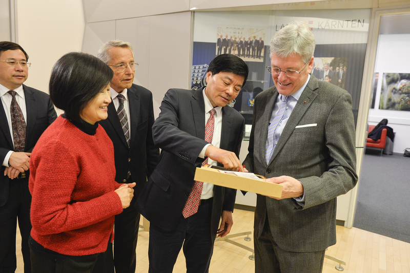 2018 sei ein sehr erfolgreiches Jahr für Kärnten gewesen, erklärte der Landeshauptmann. So sei es gelungen, das größte Wirtschaftswachstum von allen österreichischen Bundesländern zu erzielen. "Kärnten ist mit seiner einzigartigen Natur als Tourismusland bekannt. Ich möchte aber auch betonen, dass 55 Prozent unserer Wertschöpfung aus einer sauberen und zukunftsorientierten Industrie kommen. Kärnten setzt sehr stark auf Forschung und Entwicklung und verfügt gleichzeitig über ein sehr stark ausgeprägtes Klein- und Mittelunternehmertum", so Kaiser. Kärnten sei mit seiner Lage am Schnittpunkt dreier Kulturen auch daran interessiert, Interkulturalität und Internationalität zu leben. Mit Investitionen in das Fürnitzer Logistikzentrum verfolge man das Ziel, zu einer Drehscheibe für Produkte im Alpe-Adria-Raum zu werden. Kaiser sagte der chinesischen Delegation jedwede Unterstützung seitens der Landesregierung zu, um Kooperationen mit heimischen Unternehmen zu ermöglichen. "Es freut mich und es ist wichtig, dass sie bereits gute Kontakte mit Kärntner Betrieben geknüpft haben", so Kaiser, der auch auf die europäische Spitzenposition Kärntens bei Erneuerbaren Energien hinwies. Zum Abschluss des Besuchs gab es für die chinesischen Delegationsmitglieder Craigher Schokolade aus den Händen des Landeshauptmanns. "Es würde mich sehr freuen, wenn sie beim Genuss dieser Schokolade an Kärnten und seine Menschen denken", so Kaiser.