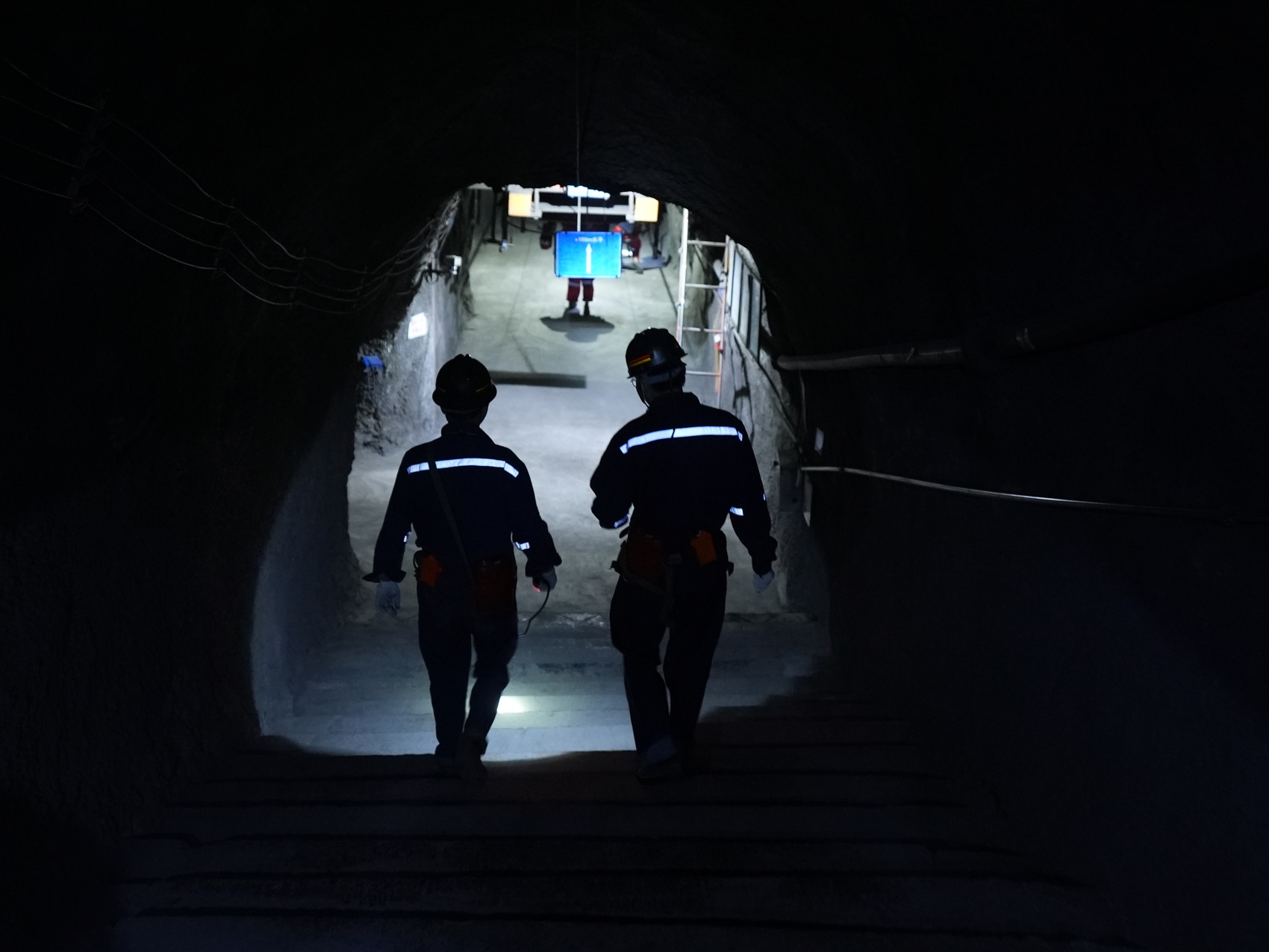 记者和工人一起行走在井下巷道内。.jpg