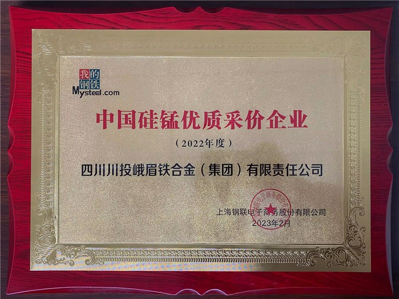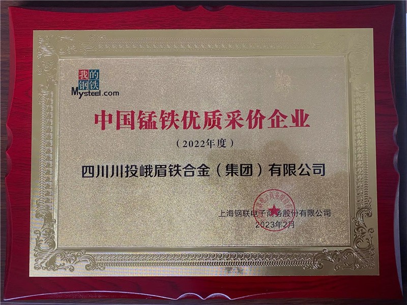 近日,在由上海钢联电子商务股份有限公司(我的钢铁网)主办,中国铁合金工业协会协办的“2022(第十三届)中国铁合金产业大会上,川投峨铁公司获“2022年度中国锰铁优质采价企业“2022年度中国硅锰优质采价企业两项荣誉。
