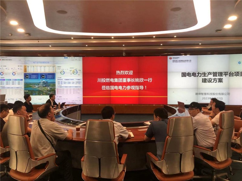 在国电电力,姚欣一行参观了国电电力的信息平台中心,现场观摩了公司综合信息平台建设、分公司生产经营集中化管控实施路径和信息展现,就平台实际应用情况与国电电力相关负责人进行了详细交流。