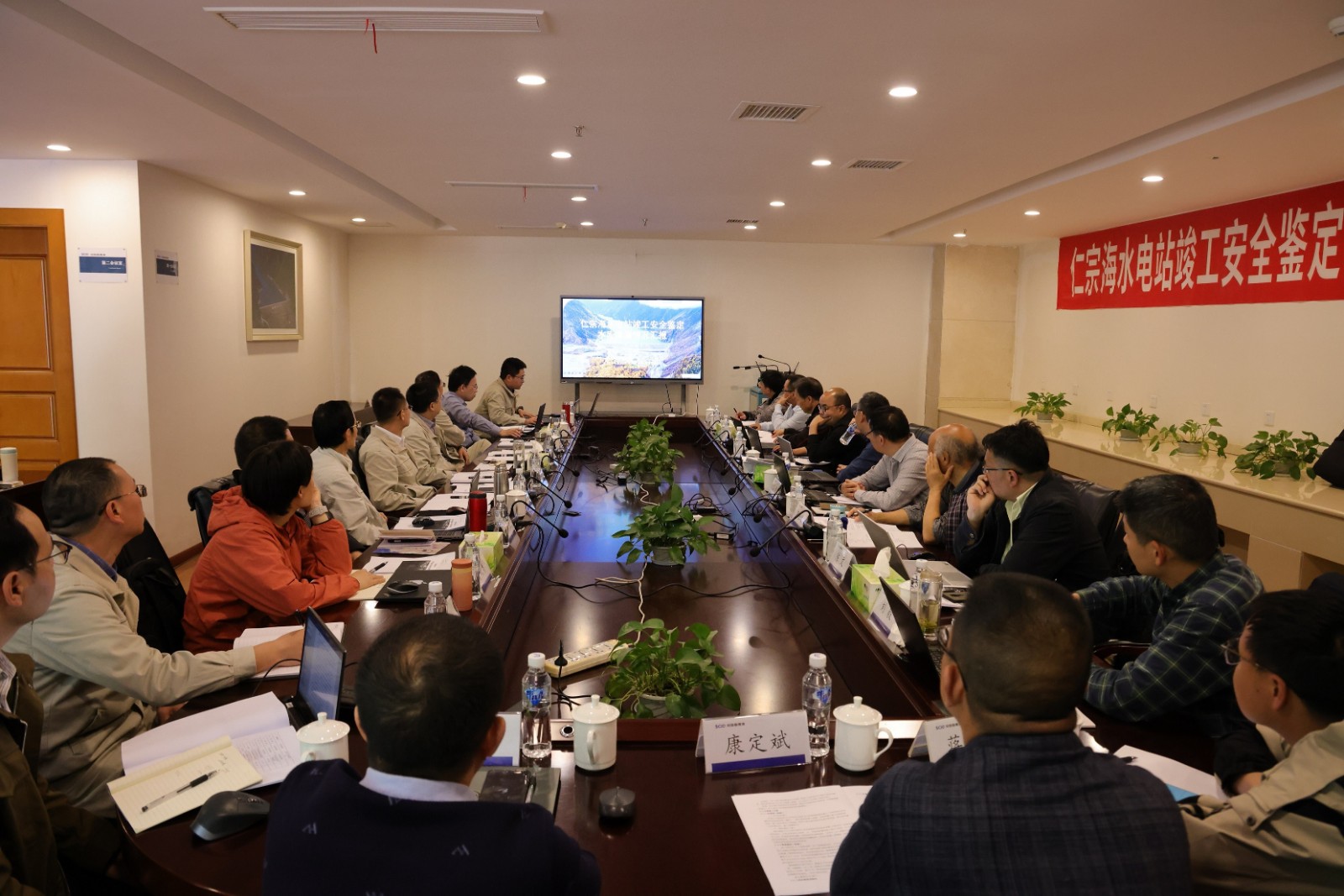会前,根据水电站竣工验收规范要求,专家组首先进行了现场检查,查阅了相关技术资料,并听取了各参建单位关于仁宗海水电站机电设备运行和大坝渗漏研究治理等情况的汇报,对仁宗海水电站工程的建设运行情况进行全面了解。