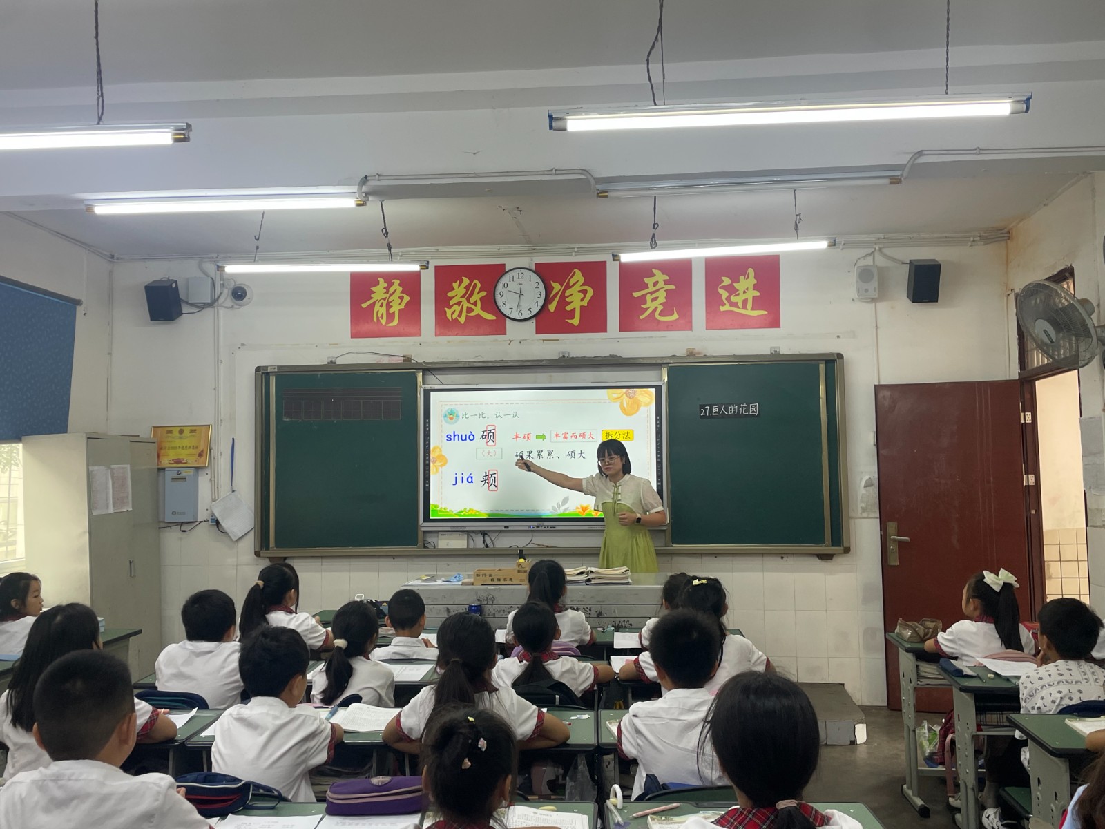 在教室里,来自双流区棠湖小学(南区)的黄佩茜老师为学生带来了一节预习导学课,根据学习步骤引导学生开展自主预习。来自双流区实验小学外国语学校的王甜甜老师通过精讲点拨课,带领学生入情入境地感悟语言文字的魅力。双流区实验小学外国语学校校长、四川省特级教师、双流区名师周晓玲工作室导师周晓玲以《语文课程标准》理念为切入点,围绕四年级下册第八单元《巨人的花园》这篇文章深入浅出地剖析了两种课型的设计理念,带来了工作室关于“自能课堂”的最新研究成果,传播教育新理念。