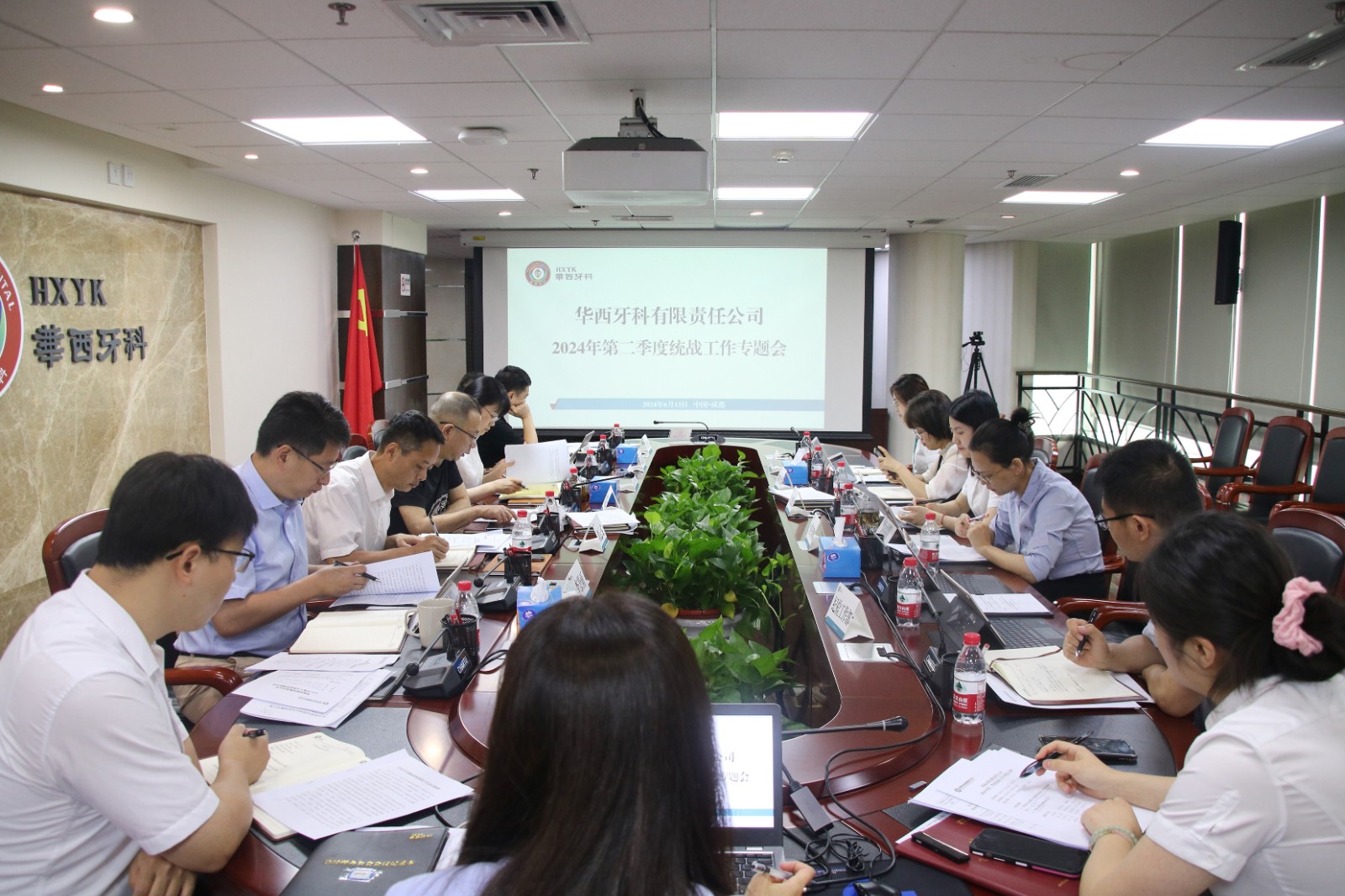 6月13日上午,华西牙科党委召开2024年第二季度统战工作专题会。华西牙科党委书记、董事长、总经理刘凌云主持会议并讲话,公司在家领导班子成员参加会议,各部门负责人和相关工作人员列席会议。会议传达学习了全省卫生健康系统统战工作会议精神,安排部署了相关工作。
