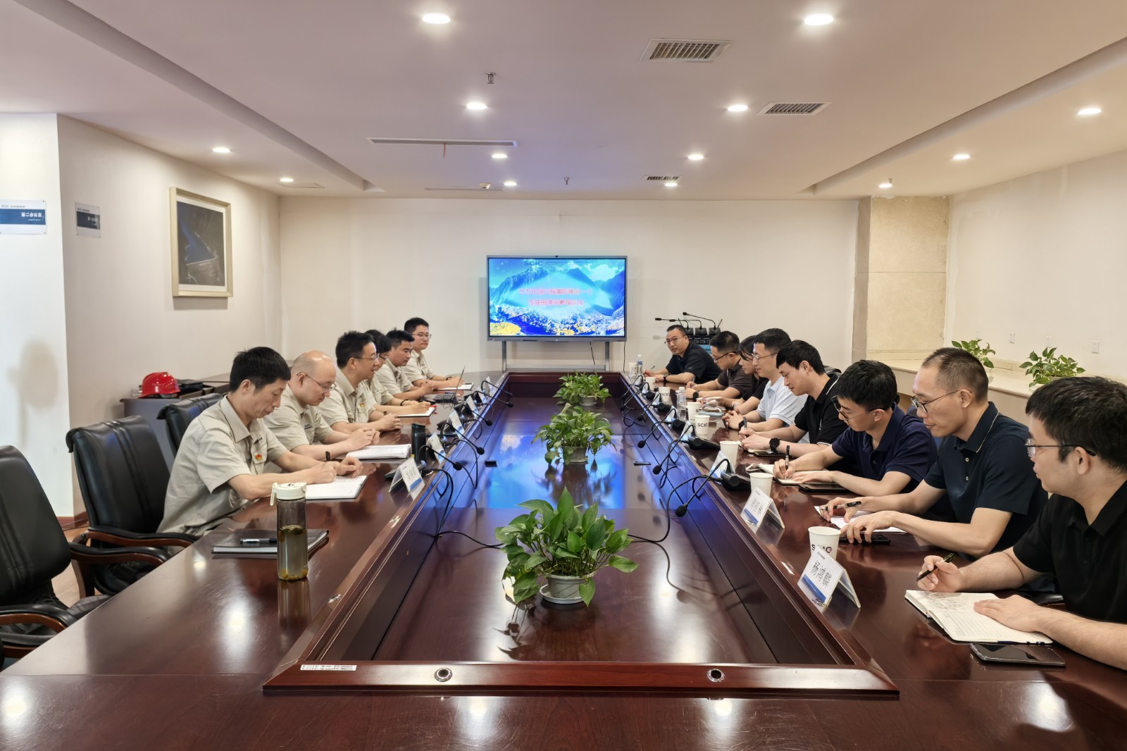 考察组一行参观了大发电站厂房、集控中心、GIS联合开关站等生产场所,详细了解流域电站总体布局及设备设施运行情况,随后双方开展座谈,就电站开发建设、安全生产、科技创新等方面技术经验进行交流。