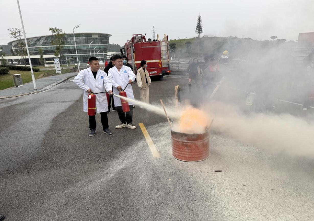 演练结束后,高新区消防救援大队兴旺路特勤站站长助理孙世国现场为大家科普了消防知识,结合实际情况,实操演示各种起火原因以及正确的灭火方式,并邀请各企事业单位人员亲自上手学习灭火器的使用方法。