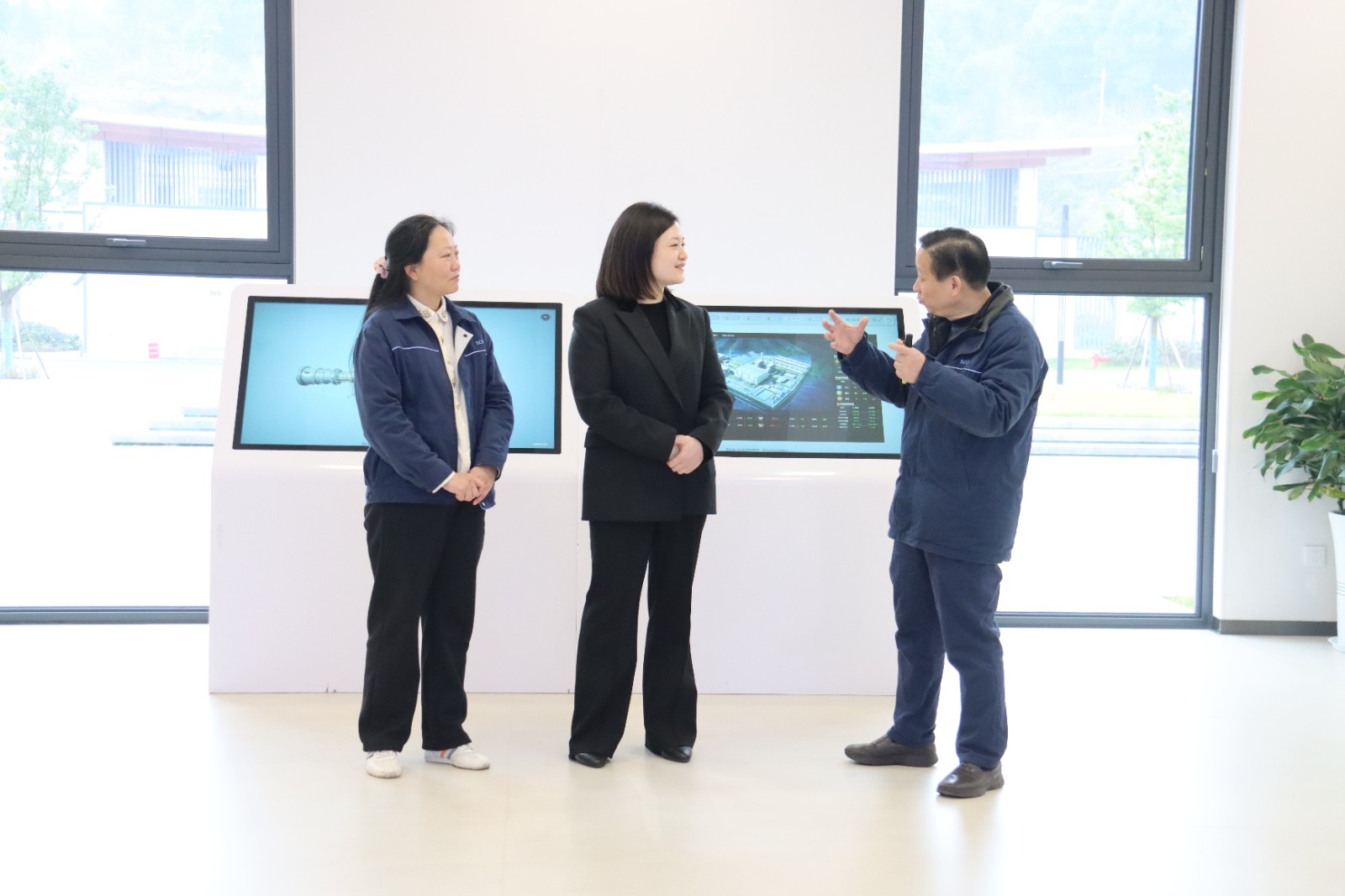 在一楼展示厅,宋一笑与企业负责人进行了深入交流,详细了解资阳气电公司2025年以来生产经营情况,认真听取企业诉求,并围绕如何解决企业生产经营过程中的难点卡点问题,助力企业健康发展进行了探讨。