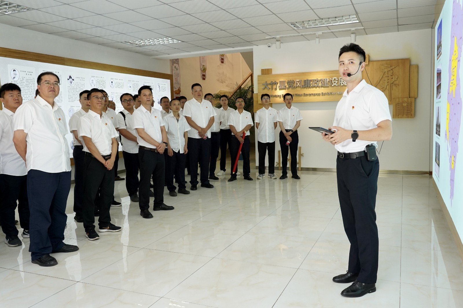 大竹竹廉馆以“竹韵清风·清廉大竹”为主题,分底楼序厅、二楼主厅两部分。底楼序厅分主题形象墙、大竹清廉地图及大竹廉吏三部分内容;二楼主厅分高屋建瓴、英明论断,栉风沐雨、砥砺前行,忠诚履职、辉煌历程,崇廉尚洁、淳风化俗,以案为鉴、知畏知止,调研基地、清廉名片,数字赋能、互动体验7个篇章,集廉洁警示教育特色和数字化体验特色为一体,让参观者从全面从严治党的时代答卷中探寻廉洁力量,从清廉大竹建设特别是大数据监督中汲取廉洁智慧,从违纪违法典型案例中得到深刻警示,永葆共产党人清正廉洁的政治本色,努力营造风清气正的良好政治生态。