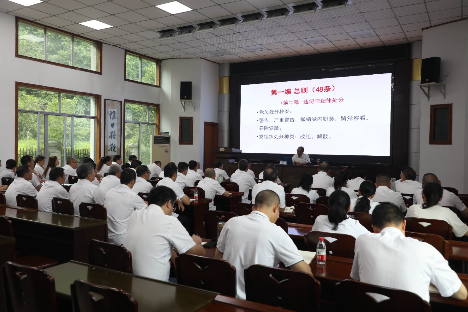 7月4日,嘉阳集团党委副书记、总经理范勤英作《严肃党规党纪,促进高质量发展》专题党课宣讲,机关第三党支部、川投峨旅党总支及所联系队站党支部共60余人聆听了宣讲。