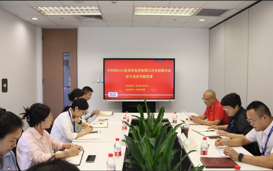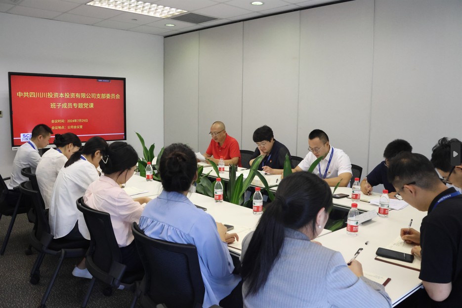 7月29日下午,川投资本党支部召开党员大会开展班子成员专题党课活动并宣讲党的二十届三中全会精神。公司党支部书记、董事长、总经理王静轶主持会议,公司全体党员参加。