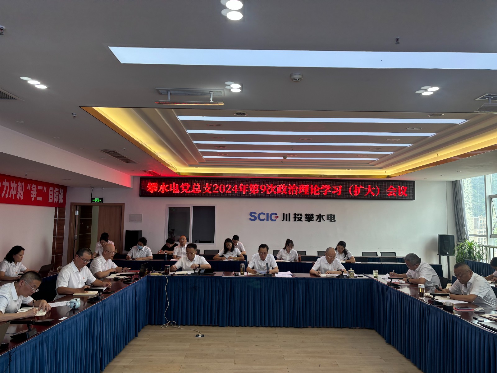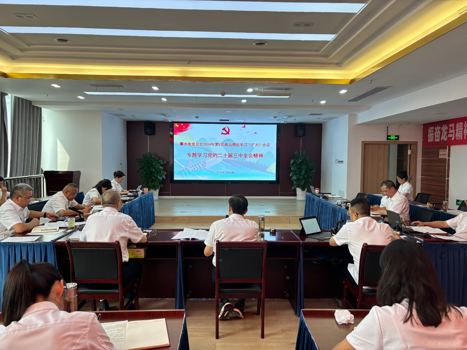 7月24日,攀水电公司党总支召开2024年第9次政治理论学习(扩大)会议,专题传达学习党的二十届三中全会精神。会议由川投能源副总经理、攀水电公司党总支书记、董事长徐孝刚主持。公司党总支政治理论学习会成员、全体中干、支部书记、其他党员、统战对象、入党积极分子共计30余人参加学习。
